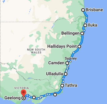 Here is a look at our itinerary on the mainland. Originally, we wanted to follow the Hume Highway from Sydney to Geelong. Luckily, we’ve changed our minds: The NSW South coast is stunning. And we avoided the ongoing flooding emergency inlands.