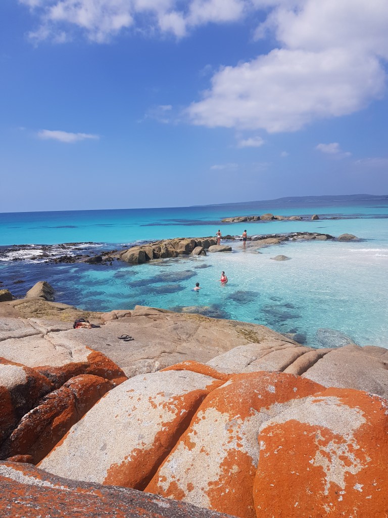 The Bay of Fires is located at the North-East coast of Tasmania. It is famous for its red-orange granite boulders and the free camping along the beaches (similar to Recherche Bay). With the Tasmanian school holidays still going, we decided to have a look at these free camps first and booked into a caravan park at St Helens (packed).